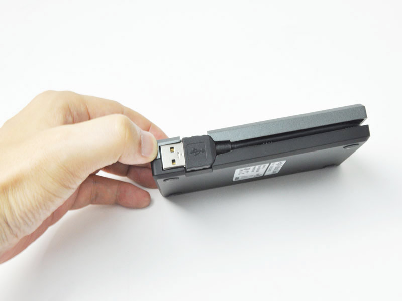 パッケージ側面。ノートPCのUSB端子から給電を行ない、じゃまにならないコンパクトサイズ。 |