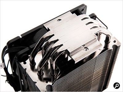 Hyper 212 Black Editionのヒートシンクはヒートパイプとフィンブロックの組み合わせというタワータイプではオーソドックスな構成。フィンには放熱性を高めるというニッケルめっきを施しており、見た目だけでなく冷却性能にも配慮した設計になっている。付属するファンは1個だけだが、増設用の部品が付属しているのもポイントだ。