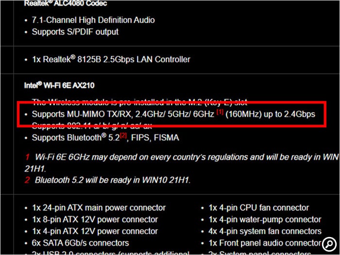 無線LANを搭載したマザーボードも増えている。Wi-Fi 6(IEEE 802.11ax)に対応している製品が多いが、2.4GHz帯と5GHz帯に加えて6GHz帯を使えるようにした規格のWi-Fi 6Eに対応していることもある。