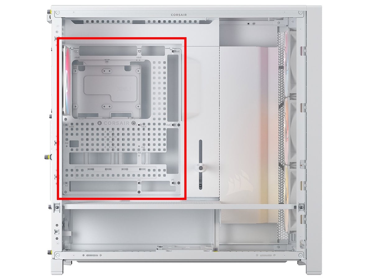 組み立てやすさの指標の一つに、裏面配線のしやすさがあります。裏面配線とはマザーボードベースの裏側、サイドパネルとの間にケーブルを通し、余ったケーブルを収納するというテクニックです。マザーボードがある側の見た目が良くなるほか、ケーブルが空気の流れを邪魔しにくくなるため冷却面でも有利になります。