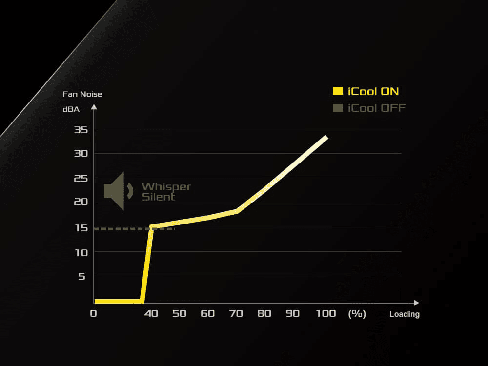 変換時のロスは熱に変わるため、変換効率が上がると発熱が減る。その分ファンの回転数を落とす、停止させるといったことができるようになり、動作音も減らせる。低負荷時にファンを停止する、セミファンレスの製品も増えている。大容量モデルではファンが停止する範囲が広く、ゲームプレイ中以外はほぼ動作しないということも珍しくない。