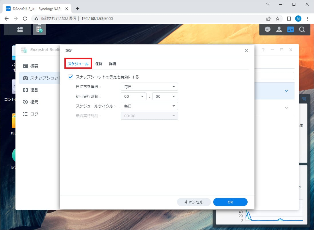 SynologyのNASでは、「Snapshot Replication」アプリをインストールするとスナップショット機能が利用可能になる。スナップショットは共有フォルダ単位で保存し、スケジュール設定で定期的に取得し続けるのが基本的な運用方法だ。