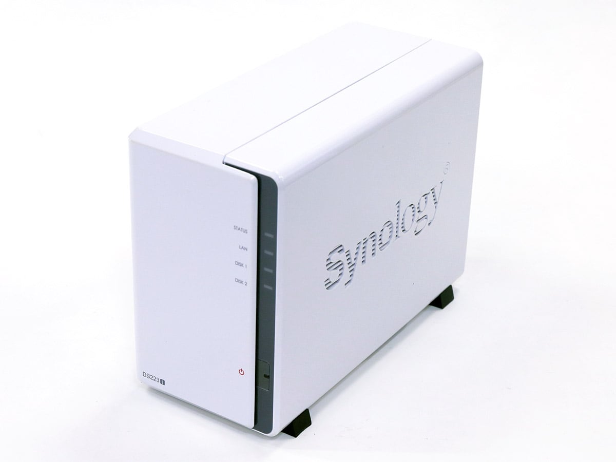 それでは、実際に製品を見ていこう。今回は「DiskStation DS223j」を使う。本機は別売のドライブを2台内蔵可能なNASキット。クアッドコアCPUと1GBのメモリを搭載し、RAID 0/1にも対応したエントリー向けモデルだ。