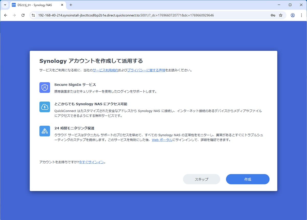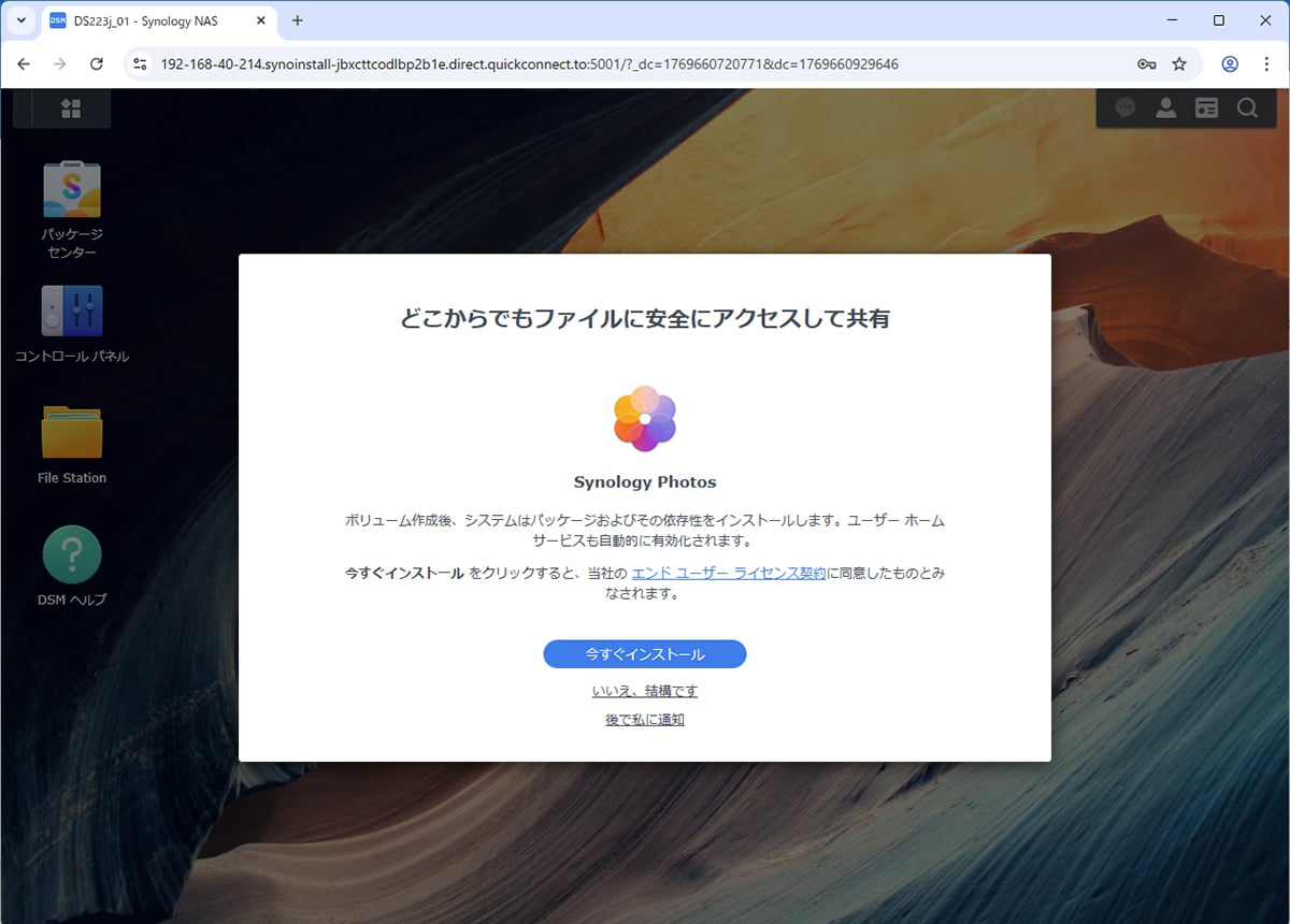 これでDS223jを使う準備ができた。次回からは使い方を紹介していく。
