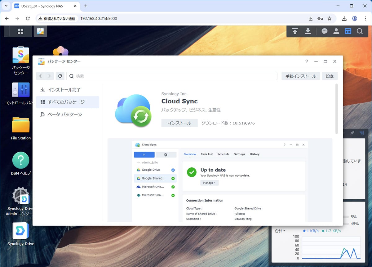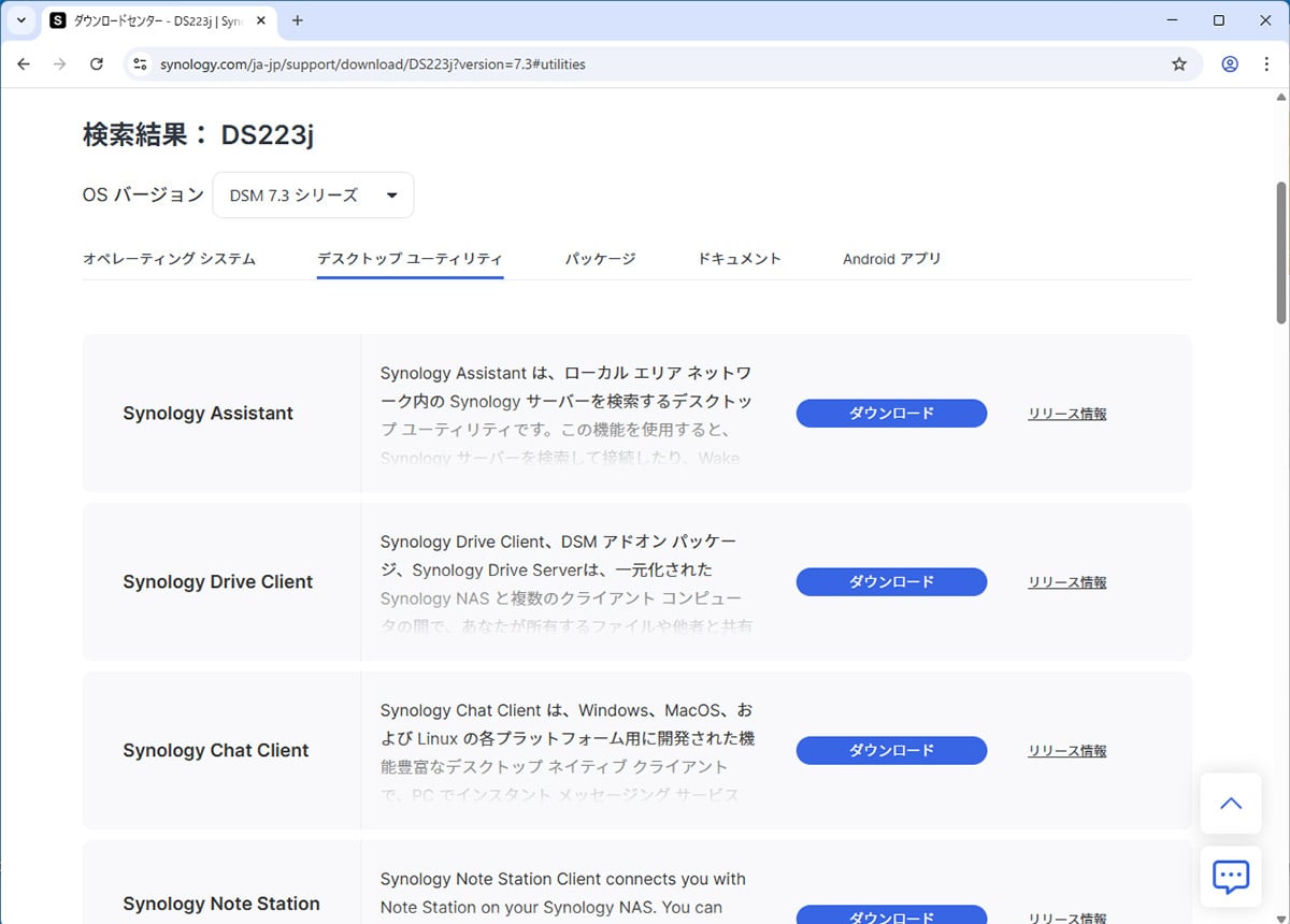 次にPC用の「Synology Drive Client」アプリをインストールする。アプリはダウンロードセンターからダウンロードする。