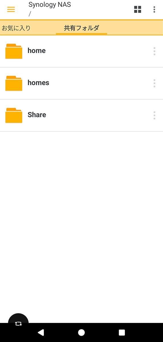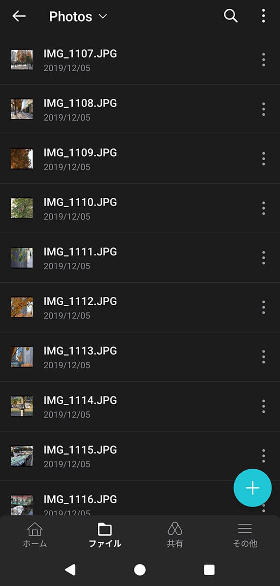 「Drive」アプリにはスマートフォン版もある。こちらはバックアップというよりも共有機能が主となり、アプリを使うと、PC用のSynology Drive Clientでバックアップしたファイルなどにスマートフォンからアクセスできるようになる。ファイルをアップロードすることはできるが、同期の機能はない。スマートフォン内のファイルのバックアップは、後述する「DS file」や「Synology Photos」でできる。