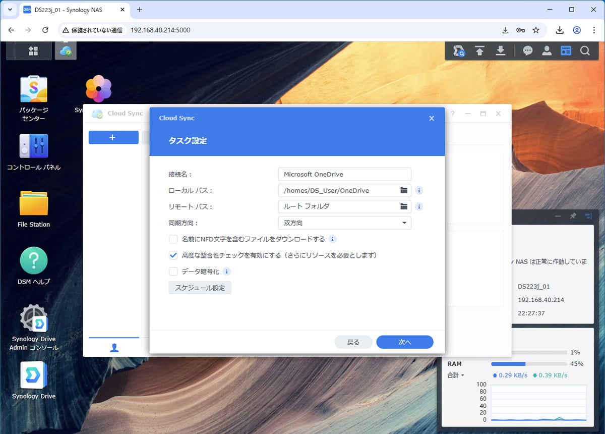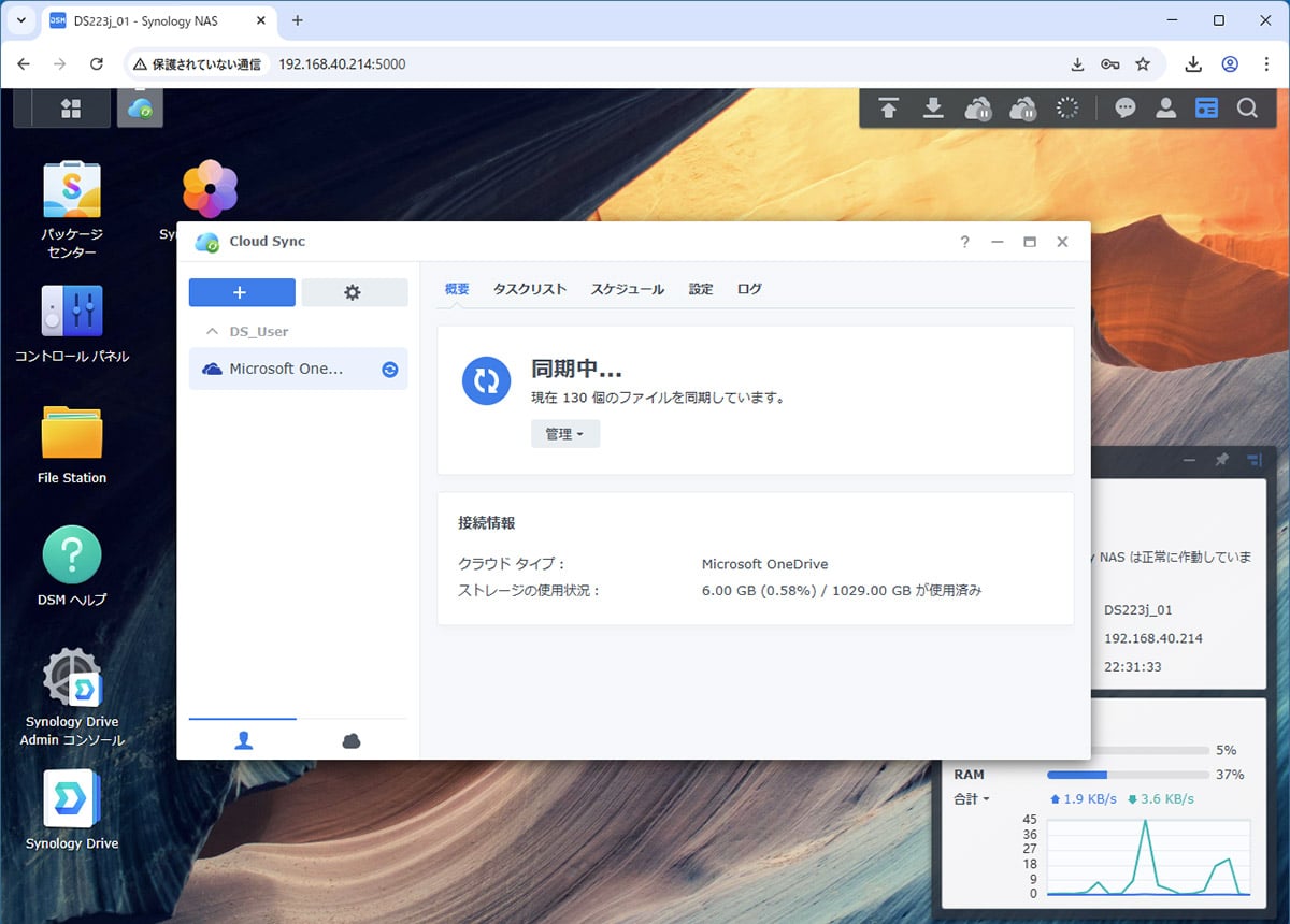 「Cloud Sync」はクラウドストレージサービスに保存したファイルをバックアップするアプリだ。対応するサービスのアカウントを登録すると、クラウド上のファイルをNASと同期する。「Dropbox」(Dropbox)や「Googleドライブ」(Google)、「OneDrive」(Microsoft)など、多くのサービスに対応している。