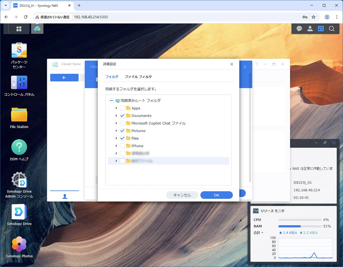 Driveの設定後は、PCの対象のフォルダーにファイルをコピーするとNASへも自動的にコピーされるようになる。バックアップになると共に、「QuickConnect」を利用すれば家の外からそのファイルにアクセスできる。