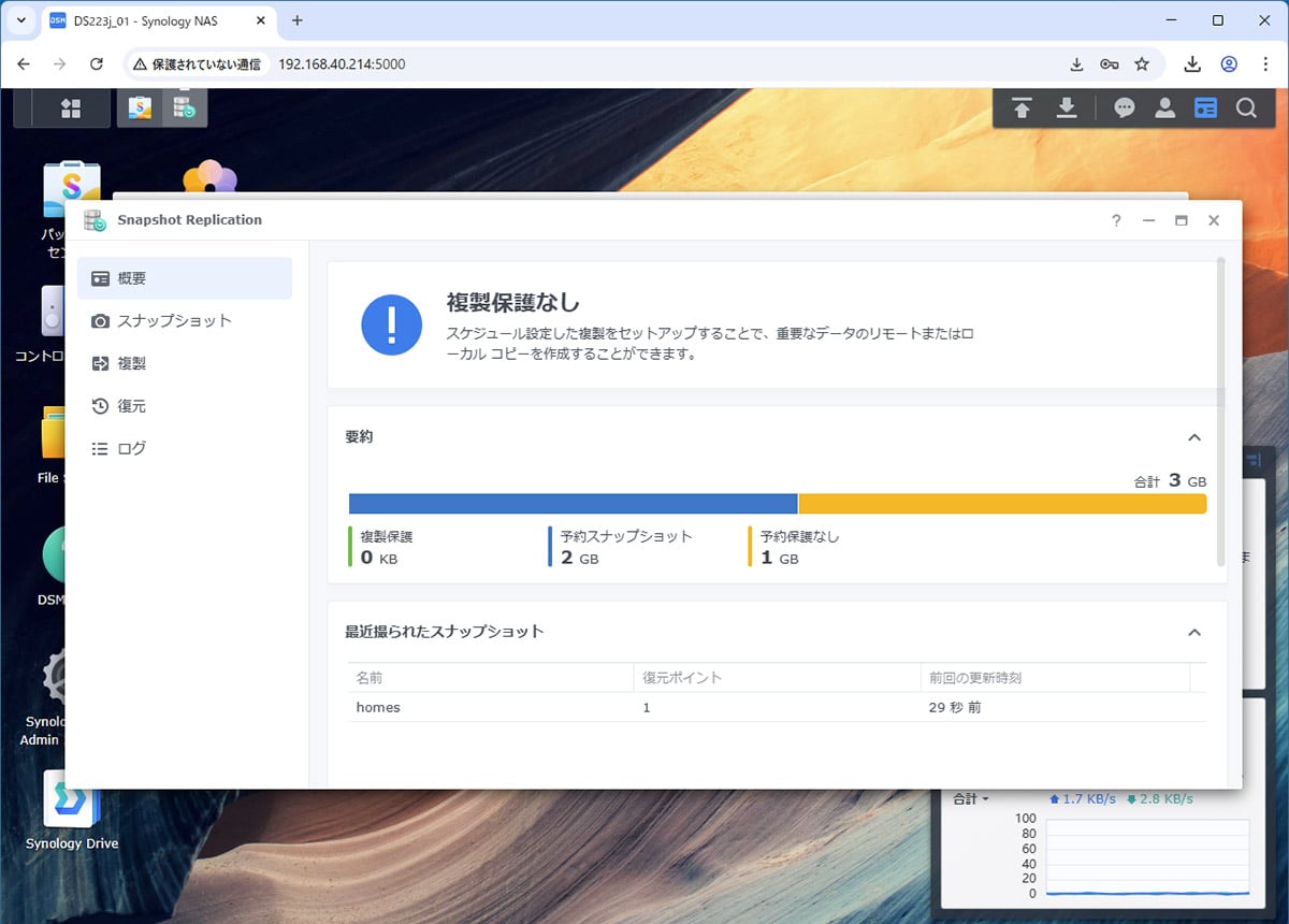 「Snapshot Replication」はフォルダーなどの状態を「スナップショット」としてまるごと保存する機能。さらに、そのスナップショットをほかのNASにコピーしてバックアップするといった多重バックアップ機能も備えている。間違ってファイルを消してしまっても過去のスナップショットから復元可能で、万一NASが故障してしまっても別のNASで途切れずに運用を続けられる。また、このバックアップは一部を更新するといった操作はできないため、ランサムウェアへの対策としても機能する。
