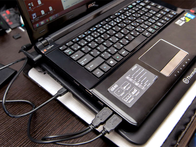 ノートPCをAllways Control上に設置すると以下のようになる。厚さのイメージとしては、ちょうどゲーミングノートであれば2倍のサイズになるといったところだろうか。給電用のUSBコネクタはUSB→USBやUSB→mini USB Bと種類があるが、いずれもケーブルが同梱されているので問題ない。また、USBポートは製品により1~2個占有してしまうがノートクーラー側にハブ機能を有しており、ポート数が減少することはないのでこちらも気にしなくてよいだろう。
