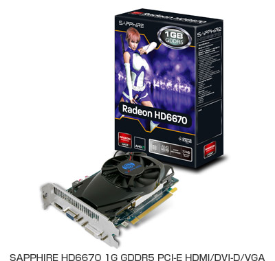 | 製品名 | SAPPHIRE HD6670 1G GDDR5 PCI-E HDMI/DVI-D/VGA |