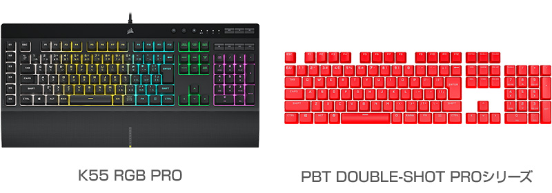 | 製品名 | K55 RGB PRO 日本語レイアウト | PBT DOUBLE-SHOT PRO ORIGIN Red | PBT DOUBLE-SHOT PRO ELGATO Blue | PBT DOUBLE-SHOT PRO Arctic White |