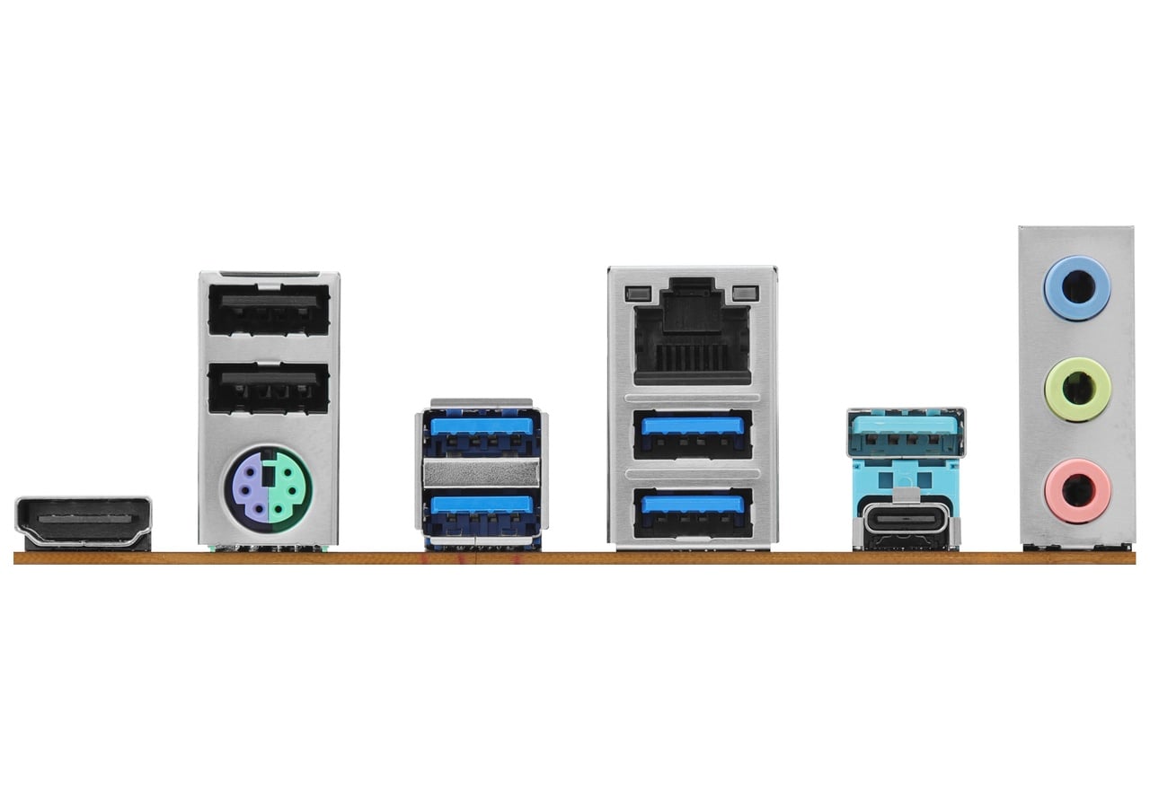| インターフェース | USB 5Gbps×11(Type-C×1、Type-A×5、Type-C 内部コネクタ×1、ヘッダピン×4) USB 2.0×6(Type-A×2、ヘッダピン×4) PS/2×1 オーディオジャック×3(Realtek ALC897) ギガビットイーサネット×1(Realtek RTL8111H) |