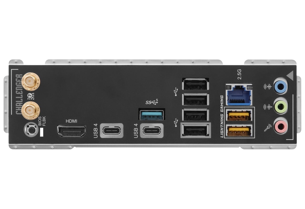 | インターフェース | USB4×2(Type-C×2) USB 10Gbps×2(Type-A×2) USB 5Gbps×6(Type-A×1、Type-C 内部コネクタ×1、ヘッダピン×4) USB 2.0×8(Type-A×4、ヘッダピン×4) オーディオジャック×3(Realtek ALC897) 2.5ギガビットイーサネット×1(Realtek Dragon RTL8125BG) Wi-Fiアンテナ用ポート×2 |