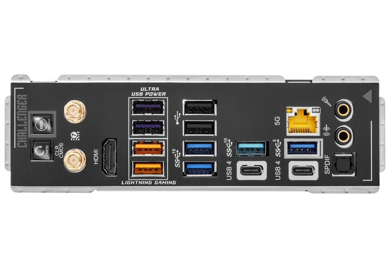 | インターフェース | USB4×2(Type-C×2) USB 20Gbps×1(Type-C 内部コネクタ×1) USB 10Gbps×5(Type-A×5) USB 5Gbps×7(Type-A×3、ヘッダピン×4) USB 2.0×6(Type-A×2、ヘッダピン×4) オーディオジャック×2(Realtek ALC4082) オプティカル S/PDIFポート×1 5ギガビットイーサネット×1(Realtek RTL8126) Wi-Fiアンテナ用ポート×2 |