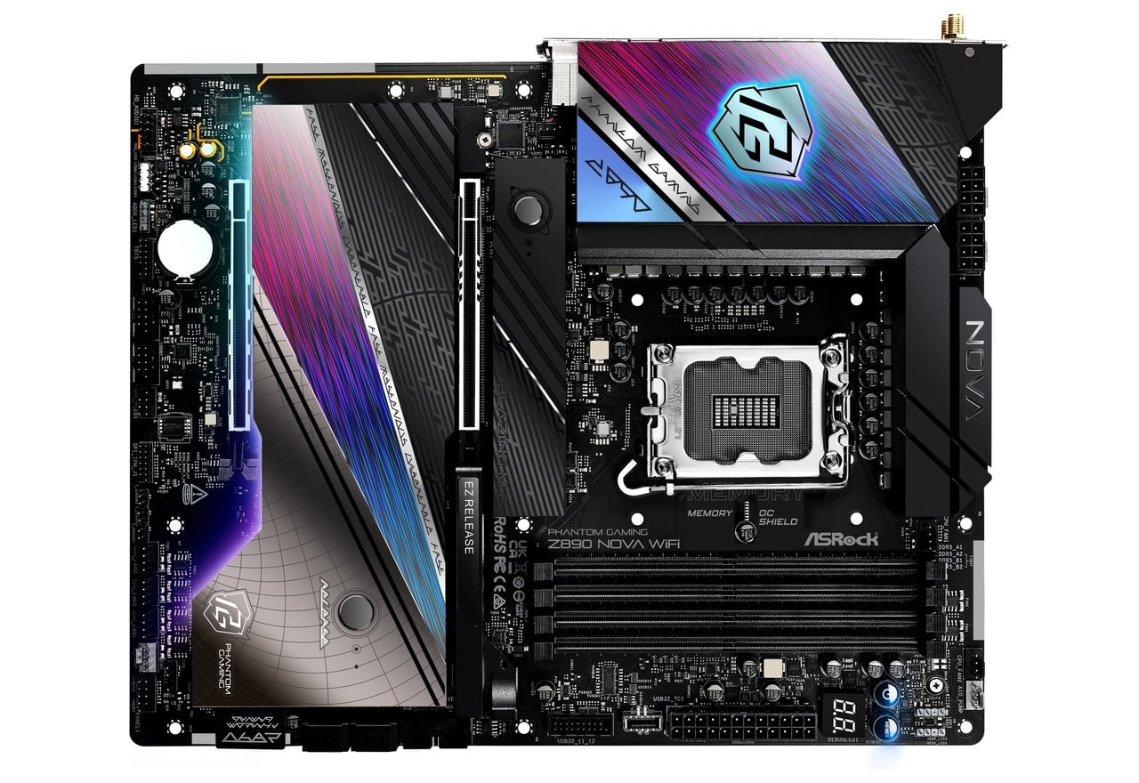 Intel Z890チップセット搭載。多数のM.2スロットと大型ヒートシンクを備え、高い耐久性と信頼性を実現したATXマザーボード