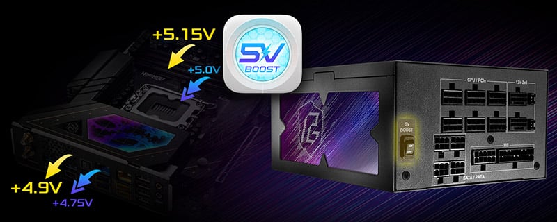 USBデバイスなどを複数接続した際に、+5V電圧を上げて安定した電力供給をすることで動作の安定性を高める「+5Vブーストモード」を装備。全てのコンデンサに日本メーカー製コンデンサを採用するほか、最大220%のトータルパワーエクスカーションに対応しています。