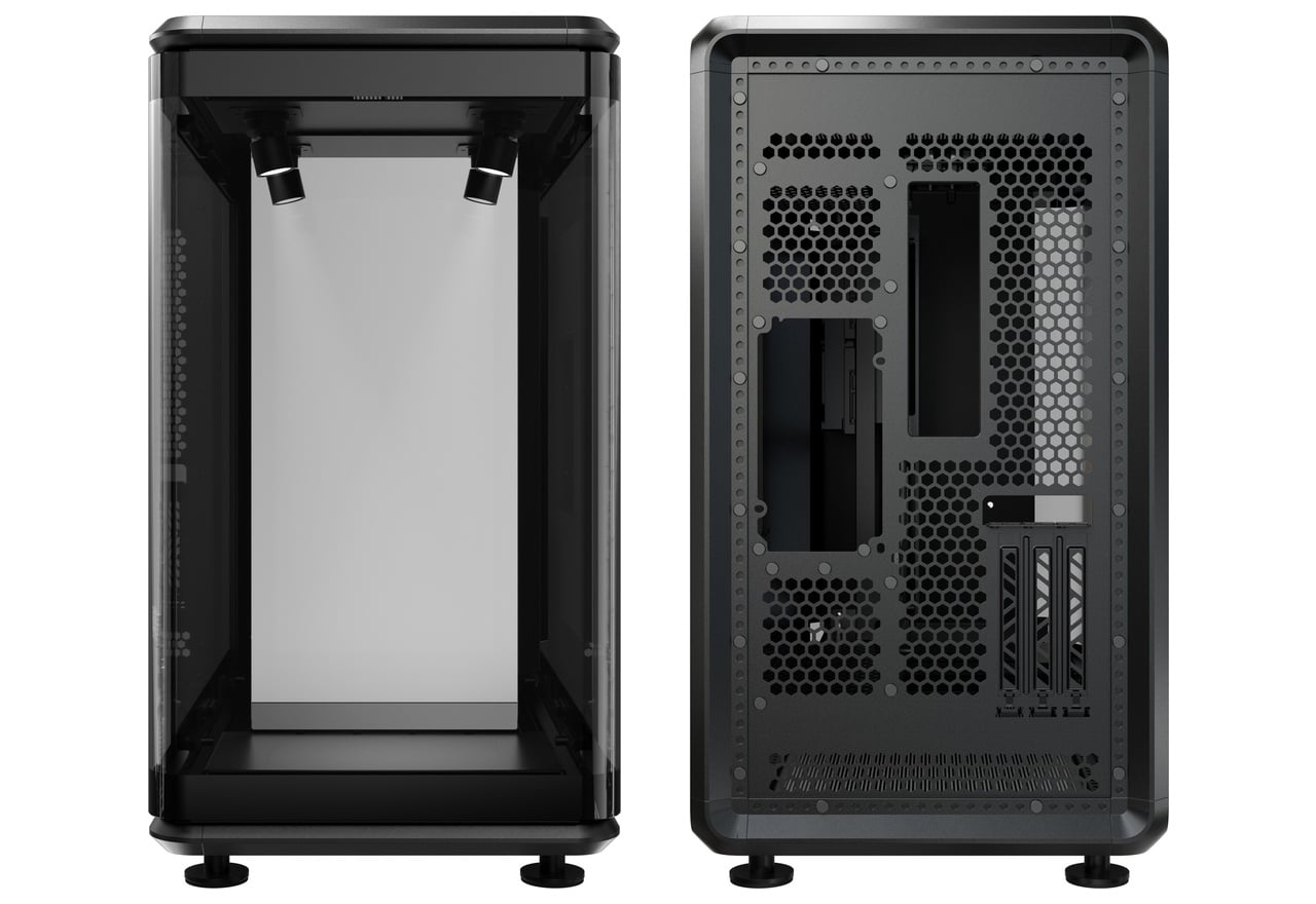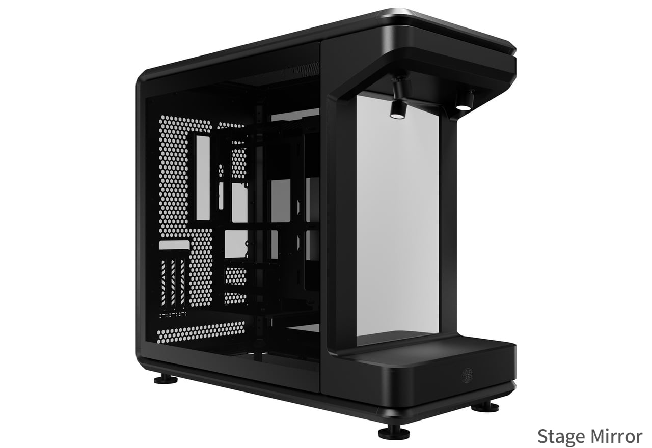 フィギュアやプラモデルなどが置けるフロントステージを備えたショーケース型PCケース