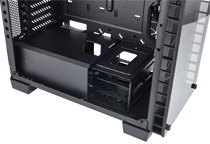 HDDを最大2台、SSDを最大3台取り付けることが可能なストレージスペースを搭載。さらに、3.5インチドライブと電源ユニット搭載部分にはケーブル類を隠すことができる内部カバーも装備しています。
