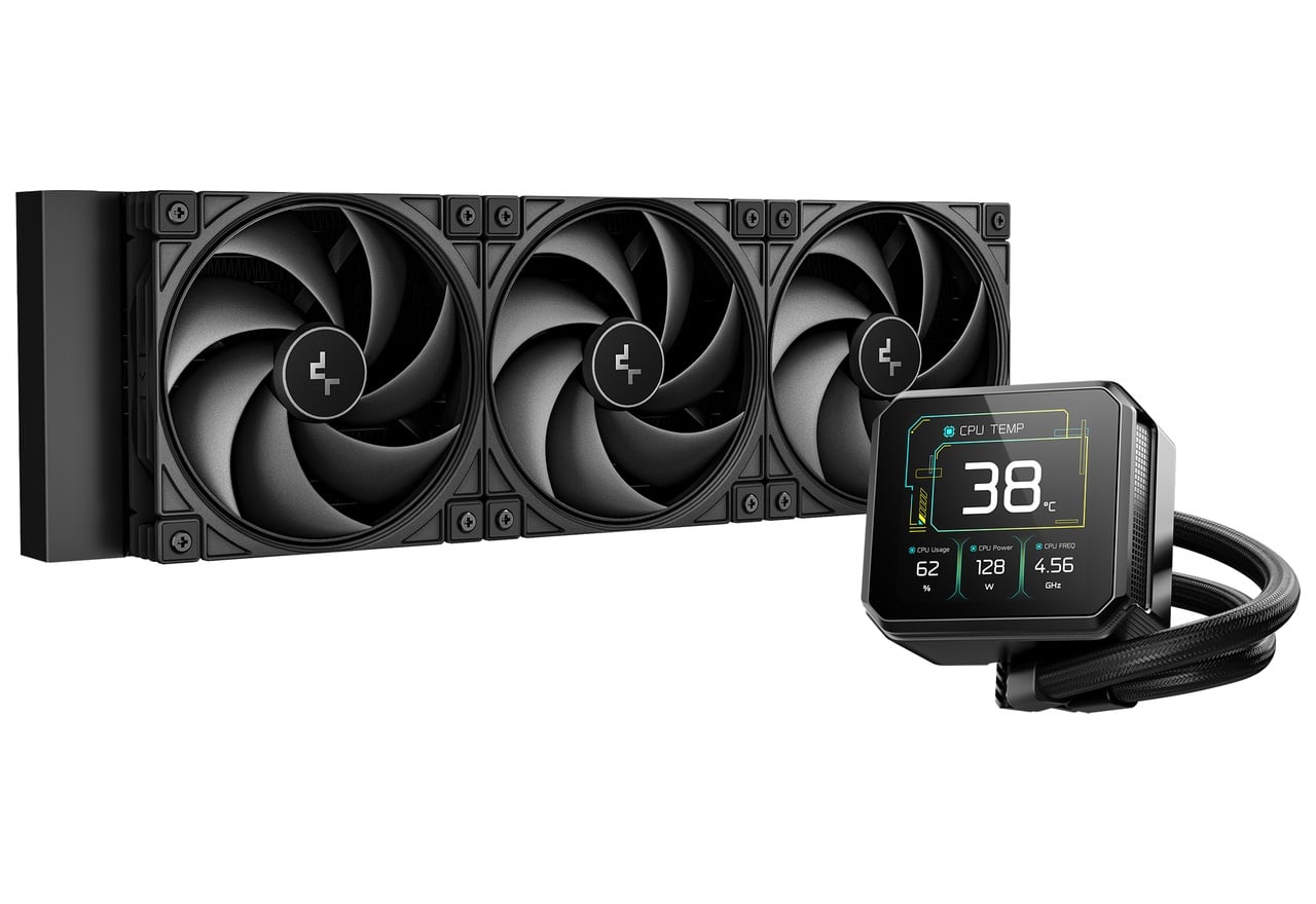 マグネット式のポンプキャップには3.4インチのIPS LCDパネルを搭載しており、解像度480×480に対応。CPUの温度や使用率などのステータスを表示できるほか、「DeepCreative:コントロールセンター」を使用することでお好みの画像やMP4動画も表示可能です。