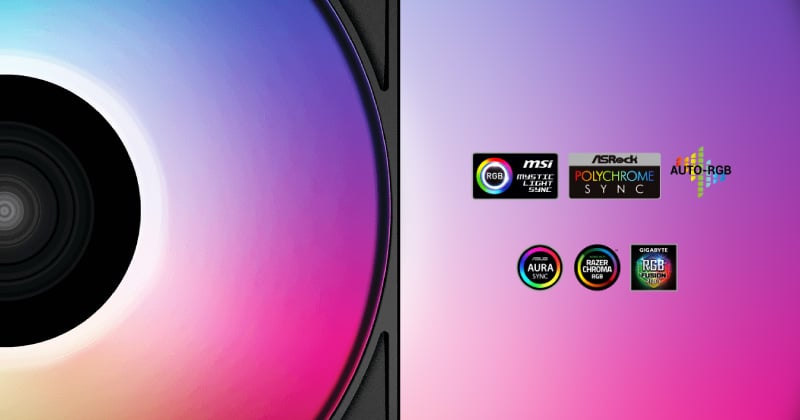 個々に設定可能なアドレサブルRGB LEDをファンの軸受部分に搭載し、半透明のファンブレードにライティングエフェクトを照らします。ソフトウェアや専用コントローラが必要とせず、初期設定されたオンボードライティングエフェクトも搭載されており、簡単にセットアップが可能です。各社マザーボードのRGBコントロールと同期可能となっており、鮮やかなドレスアップを楽しめます。