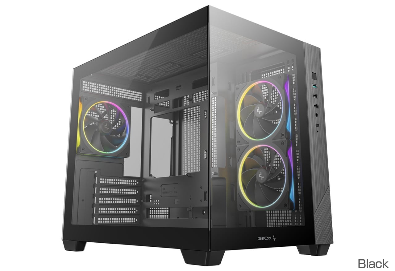 背面コネクタ設計のマザーボードに対応しており、デュアルチャンバー構造により十分な配線スペースとエアフローを確保。強化ガラスを採用したピラーレスデザインとなっており、広い角度からPC内部やライティングを見せることができます。