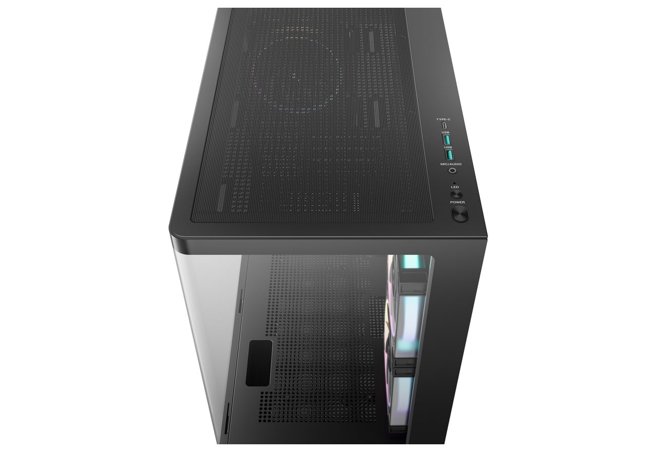曲面強化ガラスパネルを採用したピラーレスデザイン。ARGBファンも3基搭載したミニタワー型PCケース