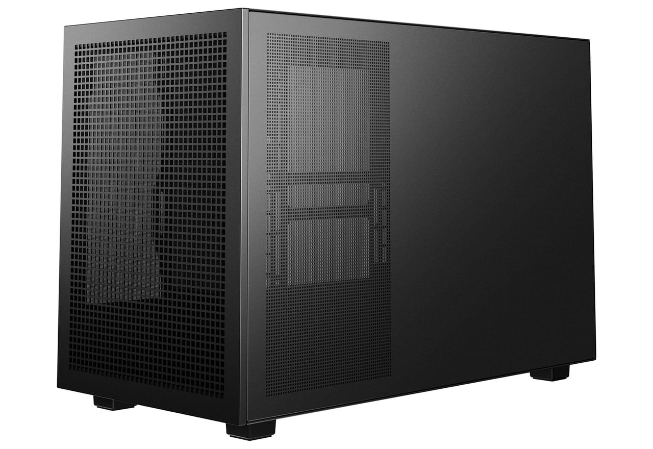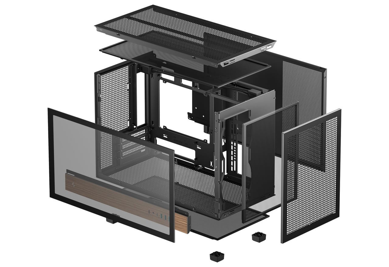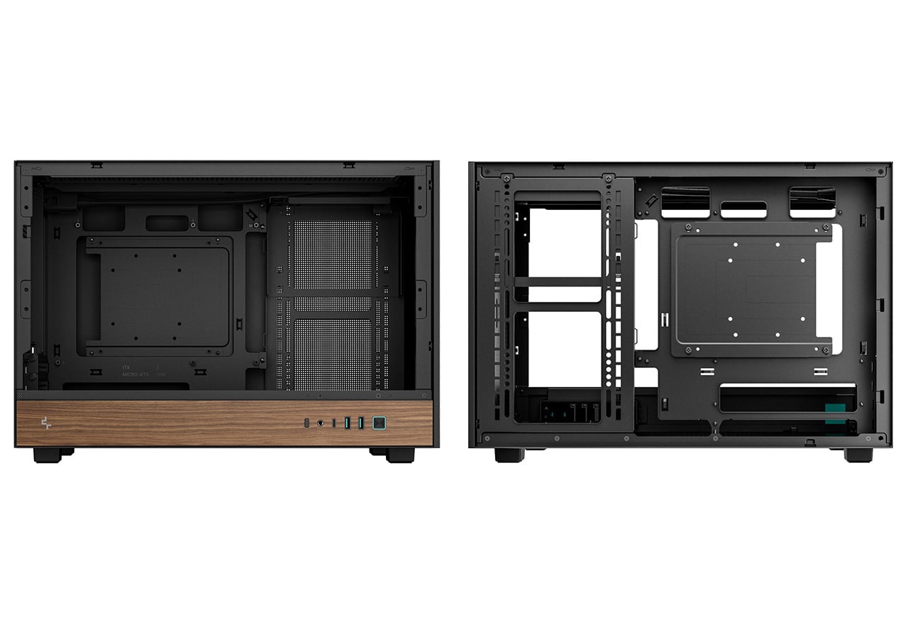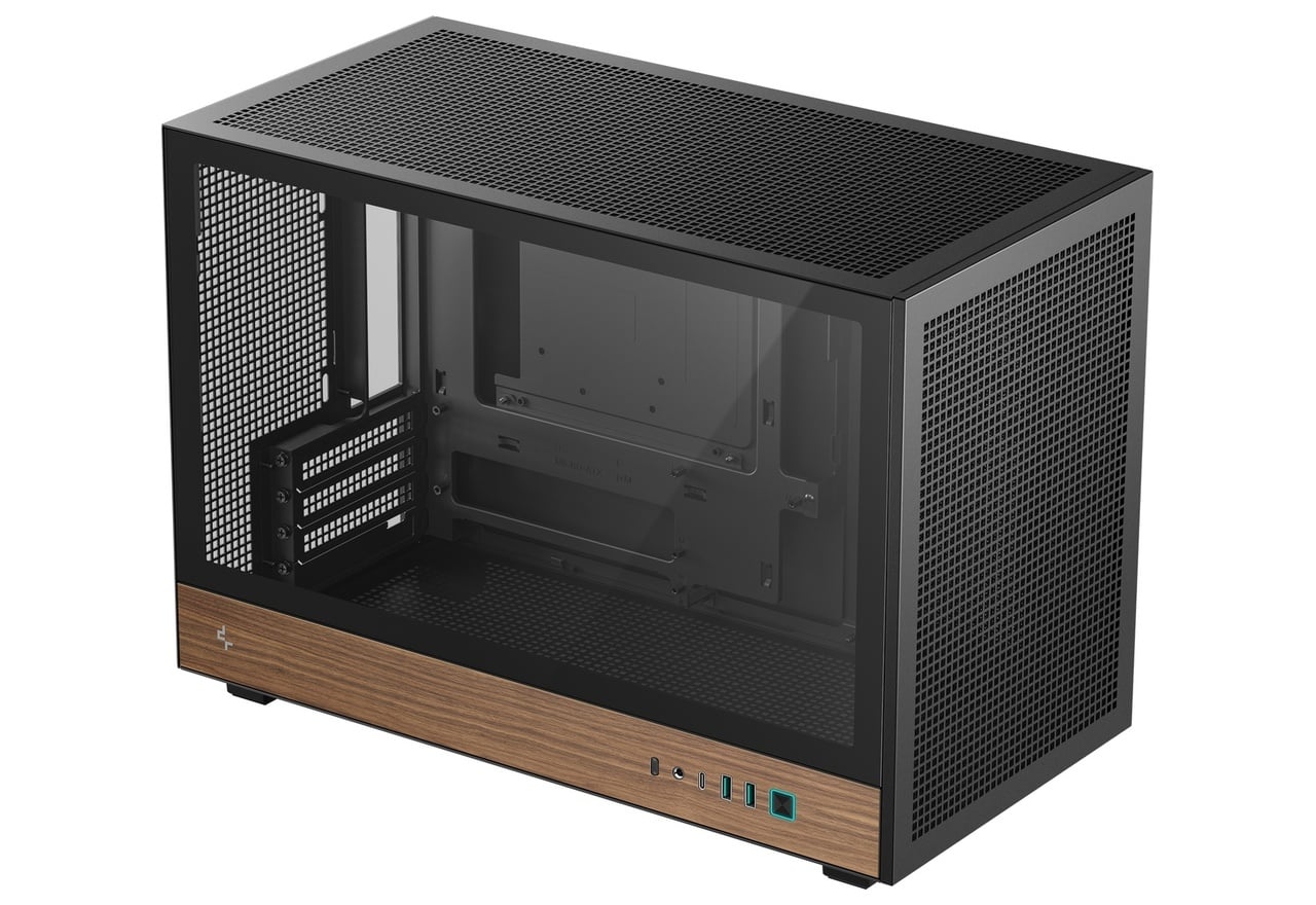木目調デザインのサイドI/Oパネルを採用。背面コネクタ設計のマザーボードに対応し、高い冷却性能と拡張性を実現するミニタワー型PCケース