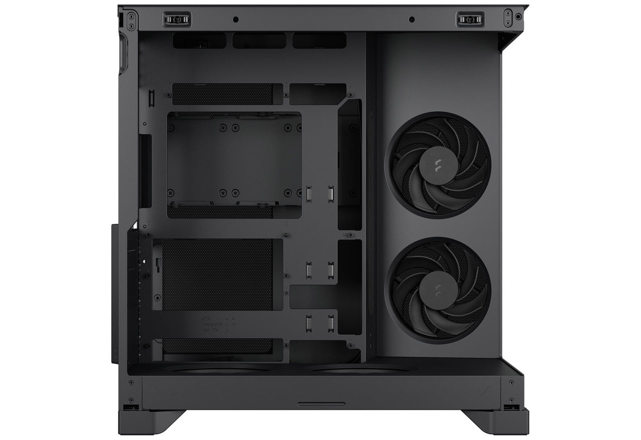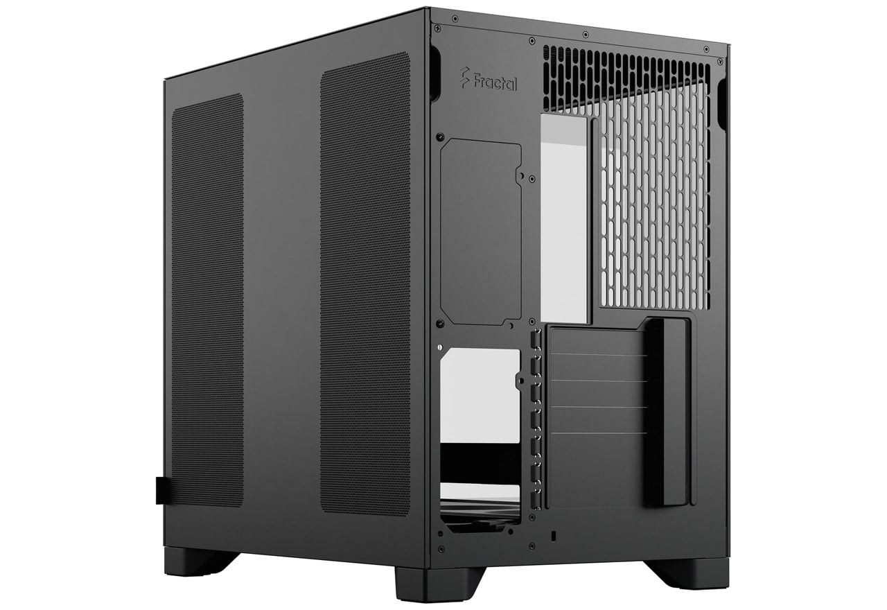 フロントとサイドに強化ガラスパネルを備えたピラーレスデザインのミドルタワー型PCケースです。4基のリバースファンを標準搭載するほか、背面コネクタ設計のマザーボードに対応しており、クリーンな内部構造のパノラマビューを実現できます。