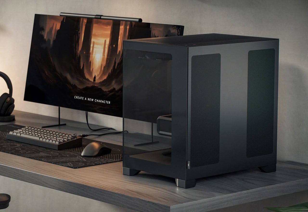 クリーンなパノラマビューが楽しめるピラーレスデザイン。デュアルチャンバー設計と優れたエアフローを実現するミドルタワー型PCケース