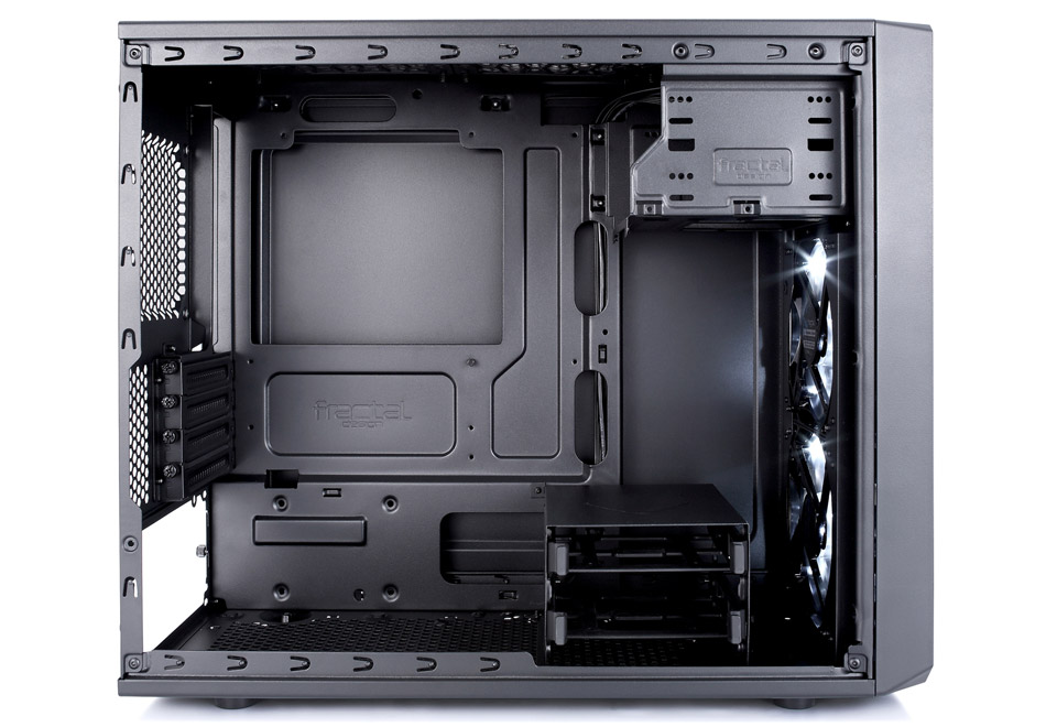 Fractal Design社製のSilentシリーズ LL 120mmホワイトLEDファンを2基標準搭載。多くの冷却オプションに対応しており、ケース内に最大6基の冷却ファンを搭載できるほか、ケース各所に120~240mmまでの水冷ラジエーターを取り付けることができ、用途に合わせたセッティングが可能です。