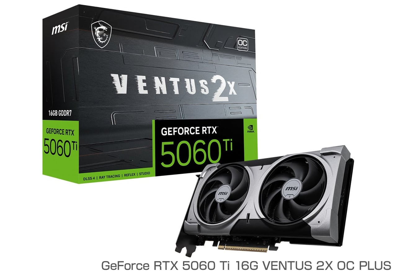 | 製品名 | MSI GeForce RTX 5060 Ti 16G VENTUS 2X OC PLUS | MSI GeForce RTX 5060 Ti 16G VENTUS 2X OC WHITE PLUS |