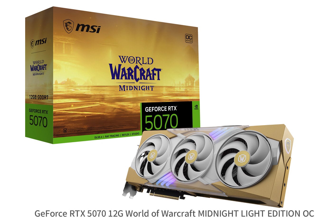 | 型番 | GeForce RTX 5070 12G World of Warcraft MIDNIGHT VOID EDITION OC | GeForce RTX 5070 12G World of Warcraft MIDNIGHT LIGHT EDITION OC |