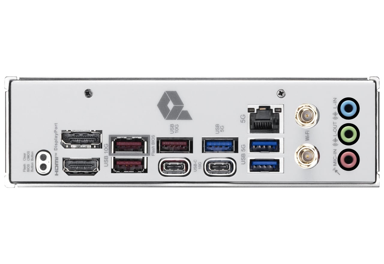 | インターフェース | USB 10Gbps×6(Type-C×2、Type-A×3、Type-C 内部コネクタ×1) USB 5Gbps×5(Type-A×3、ヘッダピン×2) USB 2.0×4(ヘッダピン×4) オーディオジャック×3(Realtek ALC897) 5ギガビットイーサネット×1(Realtek RTL8126) Wi-Fiアンテナ用ポート×2 |