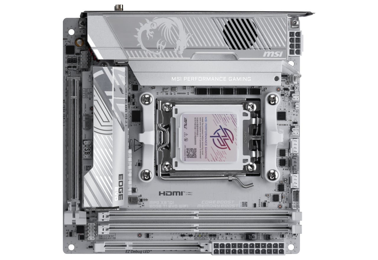 AMD X870チップセット搭載。ホワイトシルバーのヒートシンクを搭載し、優れたゲーミング体験を実現するMini-ITXマザーボード