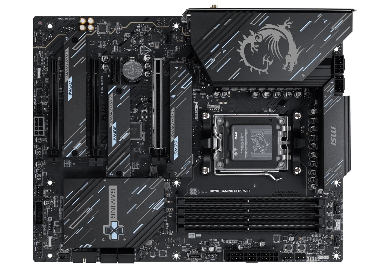AMD Ryzen 9000/8000/7000シリーズプロセッサに対応するAMD X870Eチップセットを搭載したATXマザーボードです。PCI Express 5.0対応のグラフィックボードとM.2デバイスをサポートするほか、DDR5-8200のオーバークロックメモリに対応しており、優れたゲーミングパフォーマンスを発揮します。