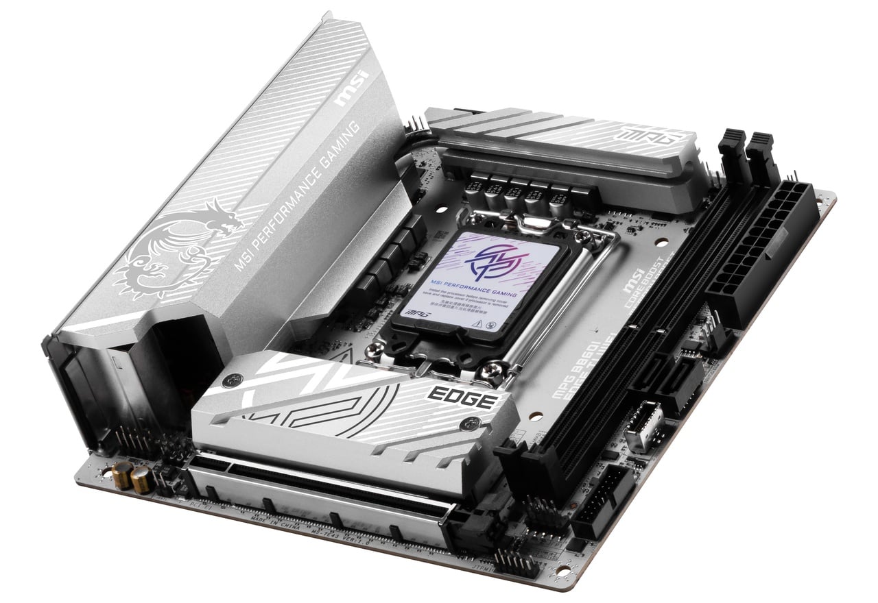 Intel B860チップセット搭載。ホワイトシルバーのヒートシンクを搭載し、優れたゲーミング体験を実現するMini-ITXマザーボード