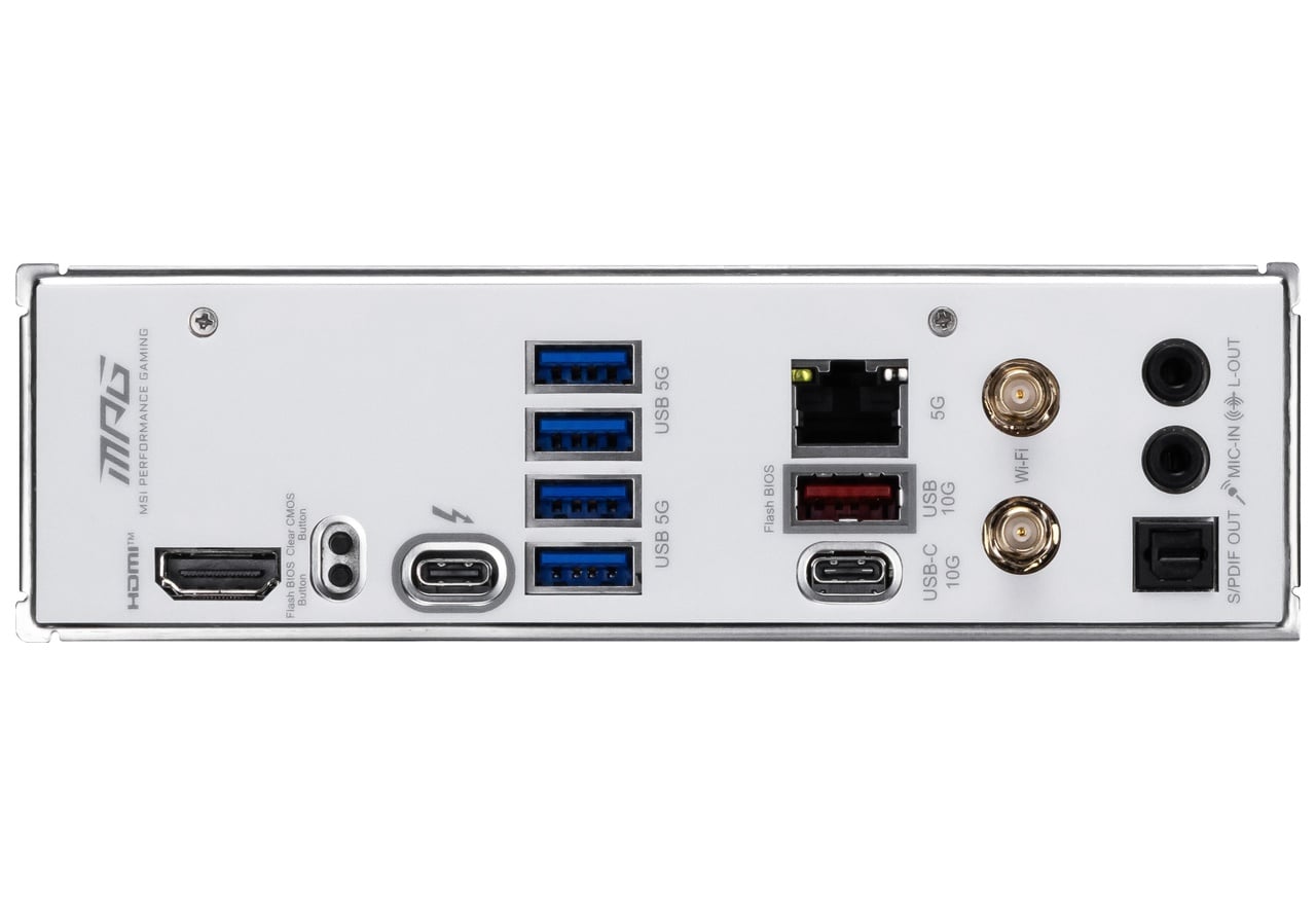 | インターフェース | Thunderbolt 4×1(Type-C×1) USB 10Gbps×3(Type-C×1、Type-A×1、Type-C 内部コネクタ×1) USB 5Gbps×6(Type-A×4、ヘッダピン×2) USB 2.0×2(ヘッダピン×2) オーディオジャック×2(Realtek ALC897) オプティカル S/PDIFポート×1 5ギガビットイーサネット×1(Intel Killer E5000B) Wi-Fiアンテナ用ポート×2 |