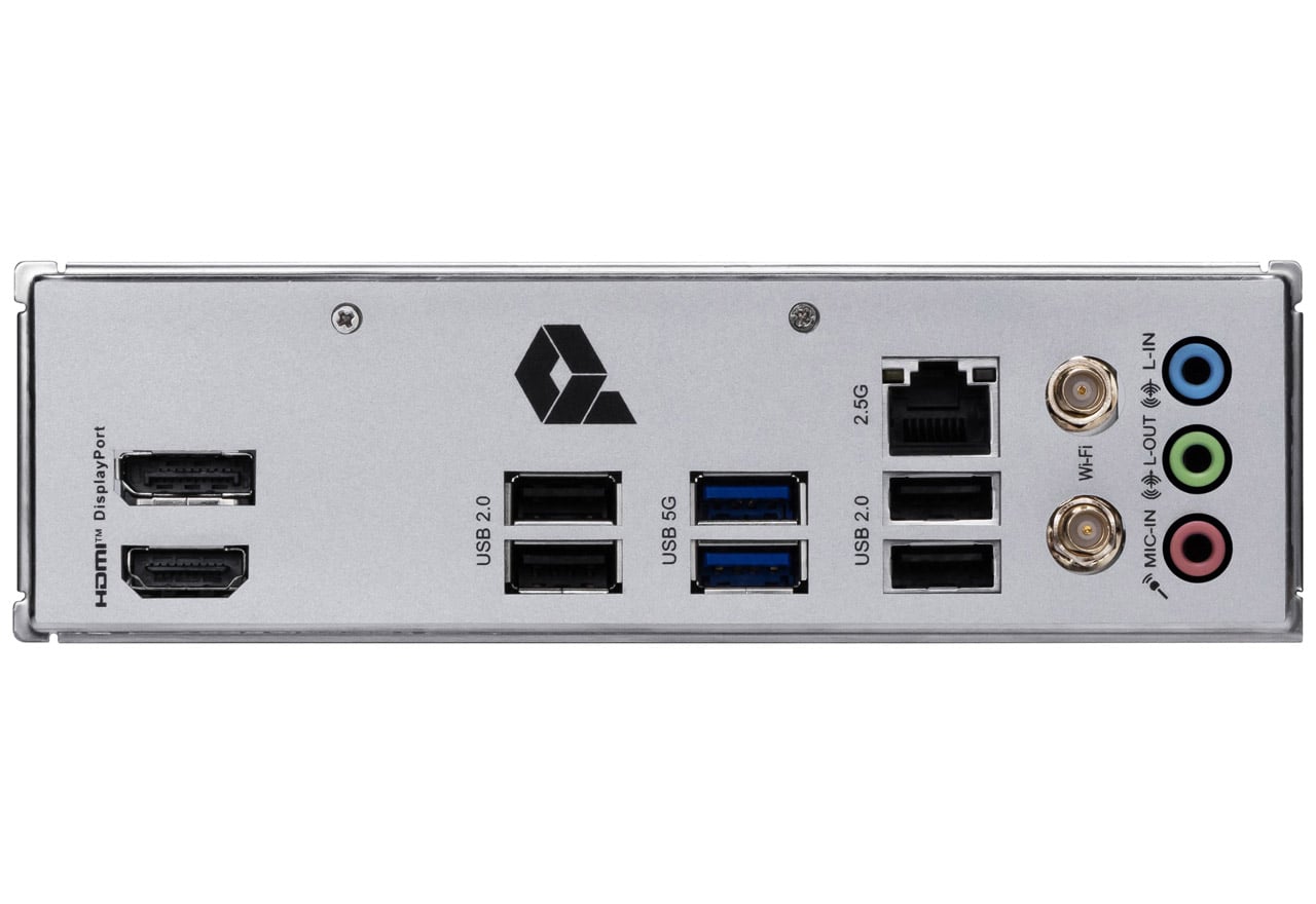| インターフェース | USB 10Gbps×1(Type-C 内部コネクタ×1) USB 5Gbps×4(Type-A×2、ヘッダピン×2) USB 2.0×8(Type-A×4、ヘッダピン×4) オーディオジャック×3(Realtek ALC897) 2.5ギガビットイーサネット×1(Realtek RTL8125) Wi-Fiアンテナ用ポート×2 |