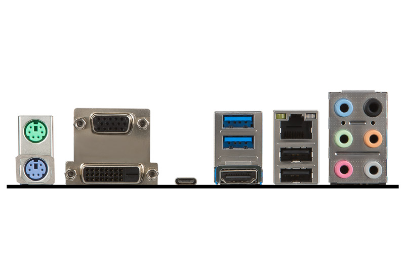 | インターフェース | USB 3.1×1(バックパネル×1) USB 3.0×6(バックパネル×2、ヘッダピン×4) USB 2.0×6(バックパネル×2、ヘッダピン×4) PS/2×2 HD Audio(8ch) Intel I219-V ギガビットイーサネット×1 |