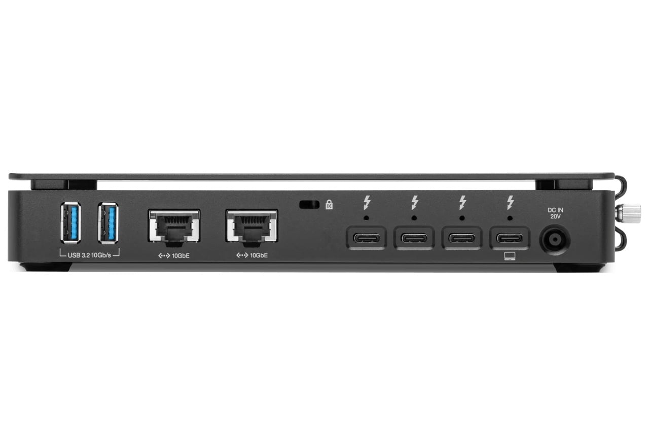 | インターフェース(背面) | Thunderbolt 5 Type-C アップストリーム×1 Thunderbolt 5 Type-C ダウンストリーム×3(ディスプレイ出力およびUSB PD 15W対応) USB 3.2 Gen 2 Type-A×2 10GbE RJ45×2 |