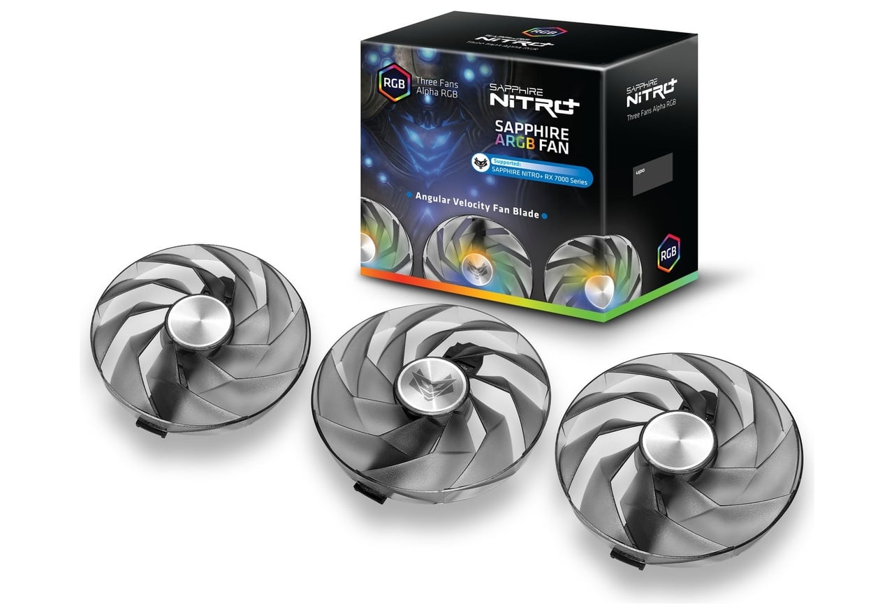 SAPPHIRE NITRO+ RADEON RX 7900 XTX/RX 7900 XT/RX 7800 XT/RX 7700 XTグラフィックボードのファンと交換可能なアドレサブルRGBファン3個セット