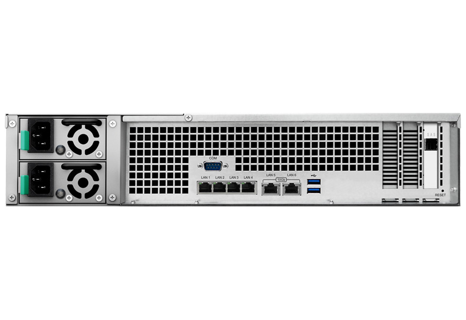 RackStation RS18017xs+は、3.5/2.5インチのSAS/SATAドライブ×12の取り付けに対応した2Uラックマウント型ストレージキットです。ビジネス向けのメールサーバーやVPNサーバーでの使用をはじめ、クラウドソリューションと連携したデータ管理・バックアップ用途での使用が可能。2.2GHz/最大2.7GHz 6コアプロセッサ及び16GB DDR4 ECC RDIMMを搭載するほか、2基の10ギガビットイーサネットと10GbE NICをサポートするデュアルPCIeスロットを装備。Link Aggregationを有効化した6基の10ギガビットイーサネット構成で4,800MB/sを超えるシーケンシャルスループット、及び568,000シーケンシャルIOPSの卓越したパフォーマンスを発揮します。