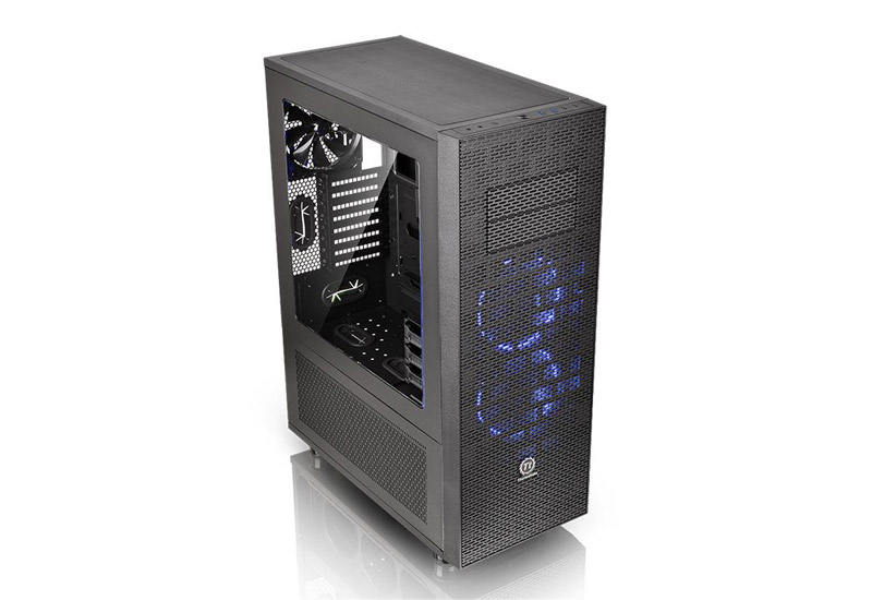 前面にRiing 14 - Blue LEDファンを2基標準搭載するほか、背面にも140mmファンを1基標準搭載。さらに、各所に冷却ファンおよび水冷ラジエーターが追加搭載可能となっているほか、エアフローを考慮したメッシュ加工や簡単に取り外しできるダストフィルターを標準装備しており、冷却効率を高めています。