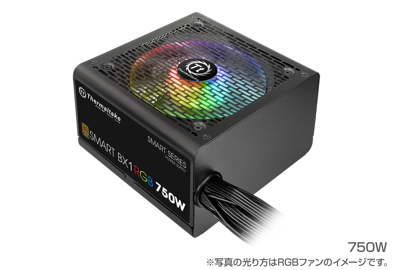 80PLUS BRONZE認定取得。7色3パターンの発光モードを備えるRGBファンを搭載しコストパフォーマンスに優れた電源ユニット