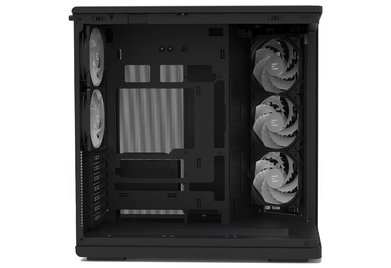 デュアルチャンバー構造により十分な配線スペースとエアフローを確保。ケーブルマネジメントを向上し、熱源を分散して冷却効率を高めています。