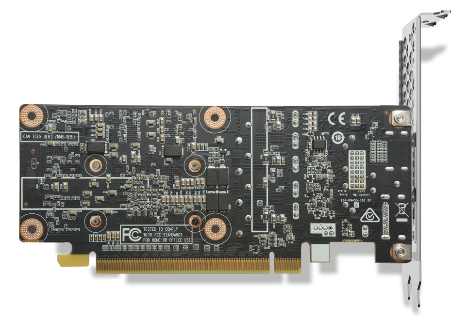 ロープロファイルに準拠し、ボード全長が約174mmとコンパクトなサイズのグラフィックボードです。GPU冷却ユニットには40mm径のデュアルファンを搭載しており、広範囲に効果的なエアフローを実現。スペースが限られている小型PCへの組み込みにも最適なモデルとなっております。